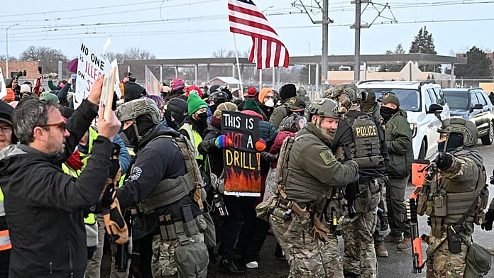 Dozens of protesters gathered early Thursday outside of a federal building on the edge of Minneapolis that is serving as a major base for the immigration crackdown.