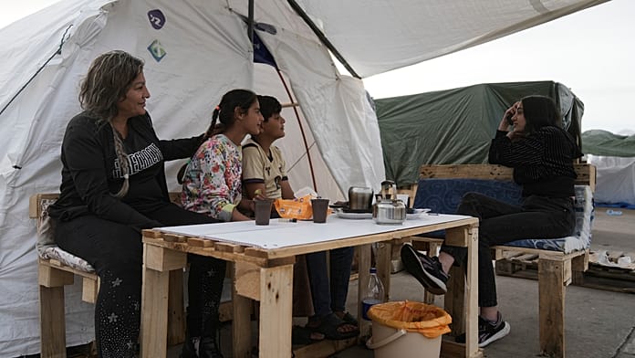 Families displaced from southern Lebanon set up tents again in Beirut after renewed Israeli warnings.